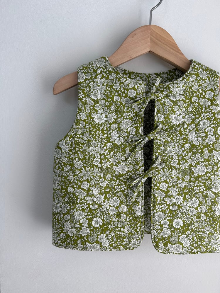 Quilted waistcoat with ties, handmade to order using Liberty of london fabrics.